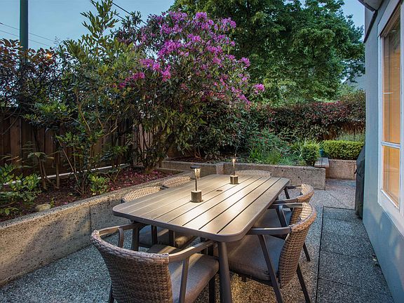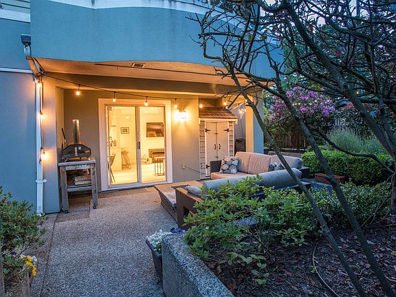 Wow... if you're looking for a large patio and garden, this is the one! Escape the bustle of the city in your private garden oasis. 573 SF of patio surrounded by 705 SF of garden/flower beds that come alive in the Spring and Summer. Complete w a great open floorplan w great separation between bedrooms, this stunning corner garden suite boasts a large living room w adjacent dining, gas fireplace (included in strata fee), great updated big kitchen, large primary suite w beautiful ensuite bath, update 2nd bath + charming 2nd bedroom, insuite laundry, and 2 PARKING. Perfect for entertaining and gardening. Pets + rentals allowed.