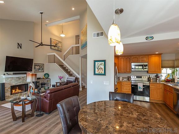 This is the one you've been waiting for! Prime canyon view lot! Completely upgraded and remodeled! Welcome to the Trails of Foxrun, located on Tecolote Canyon just 1.7 miles east of Mission Bay. Mesa College, Holmes Elementary and High Tech High Mesa are all within walking distance. The Trails are single family attached homes, not condos. The connecting wall is a double exterior wall. Very quiet! This "Concord" model is like a new home! Central air conditioning too. See the supplement below for more info! This "Concord" model bursts with space and light! This home is like new! Granite counters in the kitchen with new cabinets, stainless appliances, custom lighting. Beautiful laminate flooring. Gorgeous custom fireglass fireplace with gas lighter. Newer windows! New pavers in backyard overlooking Tecolote Canyon to the west. Newer forced air gas heating and central air conditioning! Formal dining room with angular bay windows with canyon views. Dramatic high ceilings in the living room. Rounded drywall corners. Pristine throughout! The Trails of Foxrun are 162 attached "twin" single family homes within the Foxrun Community. The are single family homes on their own privately owned lot, with a front yard, side yard and backyard. The front yard landscaping is maintained by the HOA. The connecting wall to the attached twin home is actually two separate insulated exterior walls with air space in between. The community is quiet and conveniently located to all that makes San Diego "America's Finest City".