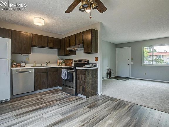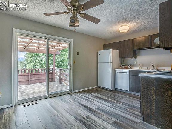 Beautiful Ranch Style Home Located In Desirable Village Seven Neighborhood Offers Comfortable Main Level Living! Updates Include New Custom Interior Paint, New Carpeting & Luxury Vinyl Flooring. The Light & Bright Kitchen Offers Spacious Cabinetry & All Appliances. The Main Level Boasts A Formal Living Room, With A Dining Area That Walks Out to A Covered Deck With Majestic Mountain Views Of Pikes Peak. Spacious Master Bedroom Has Two Master Closets & Also Has Amazing Mountain Views. One Bedroom & Full Bath Completes the Main Level. A Second Livingroom With Cozy Wood Burning Fireplace, Two Bedrooms & 3/4 Bath Are Well Layed Out In This Walk-Out Basement. Mechanical Improvements Include Newer Heater, A/C, Water Heater, Roof(2023), Energy Efficient Anderson Windows & Updated Electrical Panel. Home Is Nestled In A Cul-De-Sac On One Of The Largest Lots In The Neighborhood And Boasts A Lovely Backyard That Has New Fencing W/Metal Posts. Home Is Centrally Located With Easy Access To Shopping, Schools & Parks. This Lovely Home Shows True Pride Of Ownership.