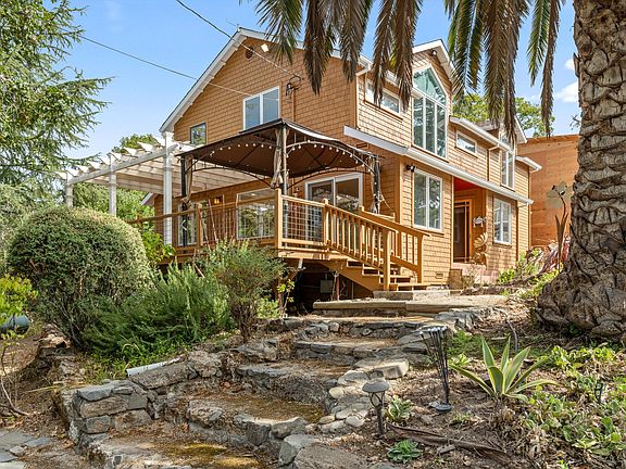 Step outside to your own hot tub for ultimate relaxation, multiple private decks for outdoor entertaining, and a private horseshoe pit. Enjoy access to an expansive meadow and take peaceful walks down to the enchanting Oak Grove with its beautiful fountain adorned with abalone shells. The property welcomes pets with space to fence an area if desired.