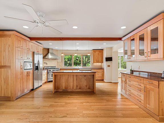 The heart of this home is the gorgeous chef's kitchen, featuring a dramatic wood beam overhead and premium Jade gas range with pasta arm. The expansive island and built-in China cabinet provide exceptional storage, while a charming breakfast nook with built-in seating creates the perfect morning coffee spot.