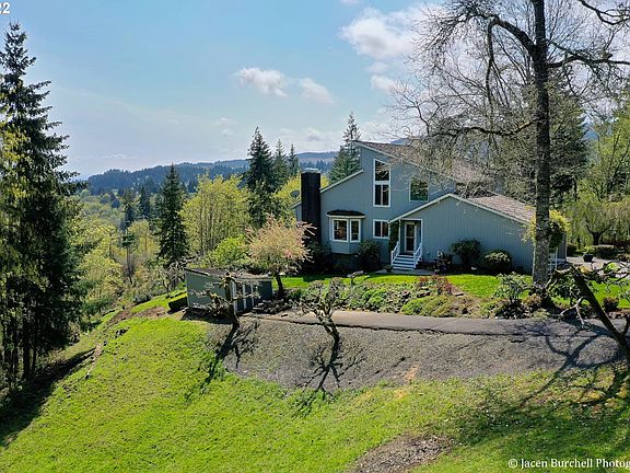 Fabulous Custom Contemporary home on 6.03 private acres. Amazing 180 degree view. Lots of updates, including newer kitchen. Living room with high ceiling. Formal dining room with custom glass panel. Family room upstairs & large family room/game room downstairs. Possible 2nd living area. Sport court, decks, Beautiful landscaped yard. Private setting with approximately 5 acres in forest. The view is truly amazing. Easy commute to Pltd, Hillsboro & more. To many amenities to list.