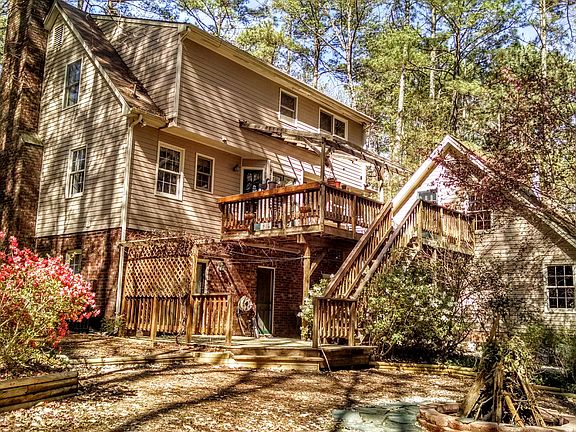 Welcome Home to this well maintained Cape Cod with full basement! Space for everyone with 3 BR/2 BA up and basement Bonus, Office, Utility, Storage & full bath. Detached 2 car garage with additional flex room - great for hobbies! Wired shed, fire pit, deck with pergola over patio. Located in the heart of North Raleigh, near shopping & entertainment, on a .7 acre lot that backs up to natural wooded area! Amazing outdoor living area to enjoy sights and sounds of nature in privacy. This is truly a Hidden Gem!