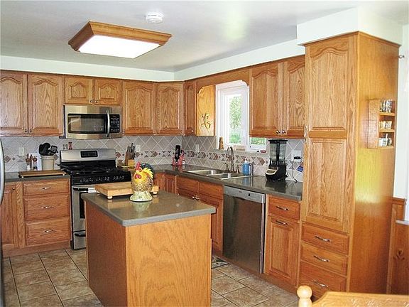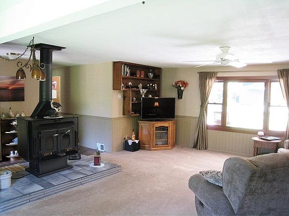 Privacy and serenity in this 4 bedroom bi-level ranch with over 6 acres of property. Updated kitchen with stainless appliances and tile floor. Enjoy the back patio, yard, and trails in the wooded acres. Oversized shed can hold lawnmower and quad. Enclosed breezeway, bonus room off the garage can be a 3rd garage stall, there is also a work room for tools and includes the workbench. Pull down attic storage and generous closets in the bedrooms. In addition to the 2 car garage, huge paved parking area and carports. Home warranty included.