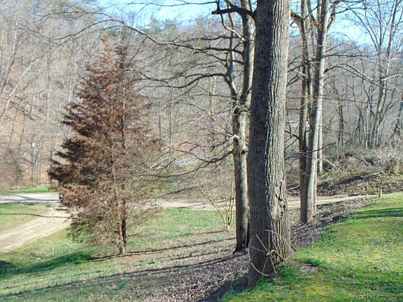 Cedar homewith loft mast and bath with catwalk to additional open space over living room area. Commune with nature from the wrap around porch. Total privacy with 4.6 acres. Many updates include roof,gutters,bathroom,porch and windows.Drive has been graded and has fresh gravel. Mobile home in front of property to be moved upon sale of home adding additional yard space.
