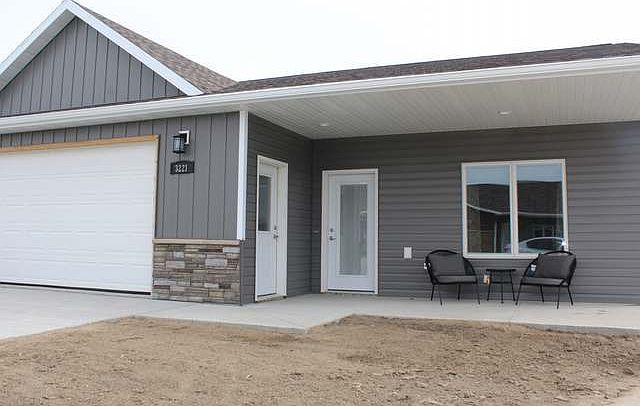 New Construction Slab on grade Twinhome located in South Bismarck. The well designed open floor plan w/ 9' ceilings boasts 1568 finished sq ft. Cheerful and Bright SOUTH facing kitchen w/ alder cabinets, black walnut trim, large center island and walk in pantry. The master bedroom suite offers a walk-in closet, large vanity w/ dual sinks, linen closet and 3/4 shower. The living room boasts a beautiful electric fireplace adorned in rich walnut woodwork. The spacious additional bedroom has an access door to the main bathroom. Window blinds are included. The laundry room is complete w/ stackable washer and dryer. Anderson windows throughout. The double attached garage is finished with heater, water and floor drain. Taxes/specials are estimated. $150.00 association fee for lawn care and snow removal. The lawn will be seeded and sprinklers by the association. Partial Privacy fence already installed. Located on a Private street. Unlock the door and call it yours!