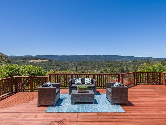 Watch the sun dip over the Coastal Range from this fantastic home in San Carlos Hills with breathtaking panoramic views. Bright and spacious, 5 bedrooms, 3 baths in a coveted San Carlos neighborhood. This home captures the beauty of the Peninsulas open space with sweeping vistas onto its mountains through walls of windows and a deck that overlooks the range. Full of updates, two new bathrooms featuring designer tile, new vanities and stone countertops, new water heater, refinished hardwood floors, solar panels, and much more. Located in a highly regarded neighborhood heralded for its schools and access to open space. Enjoy a formal living room with cathedral ceilings, a great room connected to the eat-in kitchen with views. While you are surrounded in open space, downtown San Carlos and Redwood City are a stones throw from your door. Easy access to highway 280, Caltrain, SFO & bus. Get a front row seat to a view and a lifestyle that encompasses all the reasons the Peninsula is home.