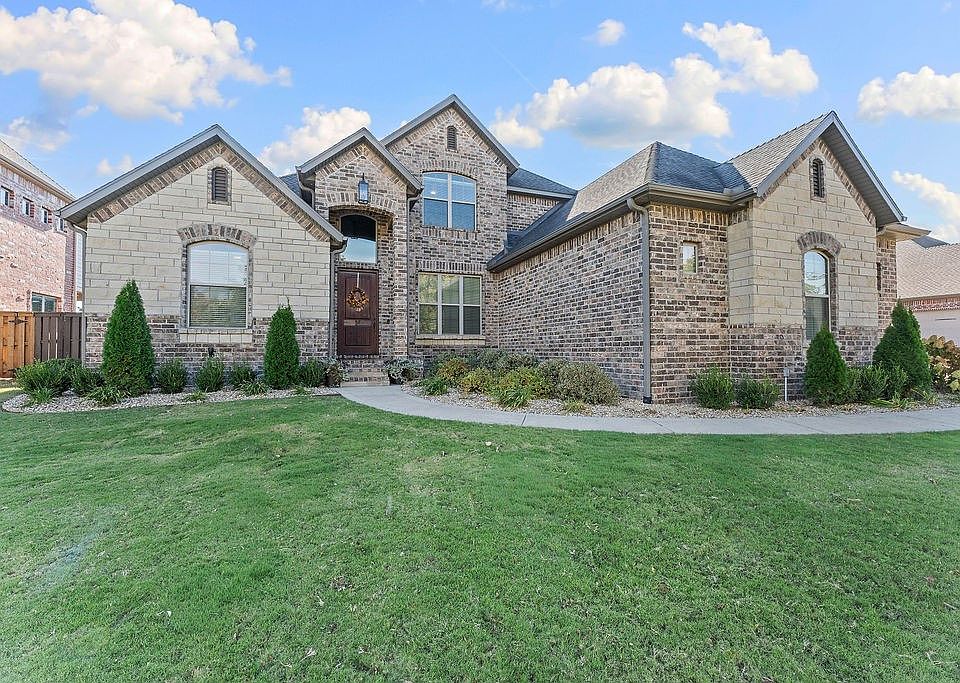 Located in the prestigious gated community of Oak Tree, this stunning home blends modern luxury with timeless elegance. Impeccably maintained, it features all brick and stone exterior, a covered patio with a gas/wood burning fireplace, built-in gas grill and a fenced, flat backyard with smart irrigation perfect for entertaining, play, or a future pool. The grand entry welcomes you to the formal dining and living areas with hardwood floors, gorgeous crown molding and gas fireplace. The chef’s kitchen showcases new Stainless Steel smart appliances, a five-burner gas range, double ovens, pot filler, granite countertops, bar seating, walk-in pantry, and a breakfast nook with hidden storage. The luxurious primary suite offers a walk-in shower, jetted tub and custom closet with built-ins. Three additional bedrooms downstairs and one bedroom upstairs feature walk-in closets. Other highlights include a mudroom, large laundry with sink and cabinetry, a theater room with 135" screen and projector, and walk-in attic storage.