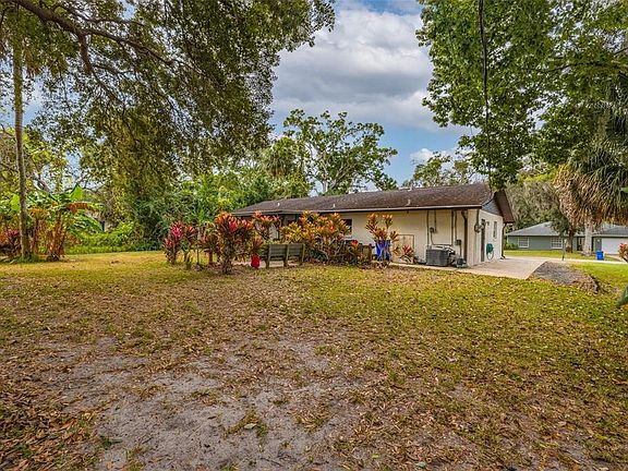 Would you love to have the benefit of privacy and space around your home? This is it! You can have a home AND your OWN buildable 80x125 lot to the North, making total lot size a rare 160’x125’ (home and extra lot are 1 parcel)! Extra lot is a serene park like setting, landscaped and mostly cleared allowing you to easily expand & create your vision- subdivide, build workshop, extra garage, or just simply enjoy the space. Solid concrete block home with brick front with attractive landscaping, 3BR 2BA with 1 car garage, expanded driveway space perfect for backing in your boat, camper, etc, Home features original charm, with just a little touch up here & there, you could easily be moved right in. Split floorplan, functional space, Galley kitchen with lots of counter space, roomy bedrooms, wood blinds, Newer windows and slider door, and even leaf guards on the 2022 installed gutters! Slider off dining room to 11'x10' screened porch over looking a nicely landscaped back yard with a sitting area out back too, perfect for outdoor entertainment. Yard features an abundance of fruit trees including banana trees, grapefruit, citrus & more. It gets better, 2 sheds (with electric) are included! Edgewater is nestled along the Indian River with fishing, kayaking and boating at your back door. About 4 miles to the closest boat ramp, just around corner from shopping, restaurants, skate park and more. No HOA. Just under 10 miles to beautiful New Smyrna Beach beaches! Welcome Home!