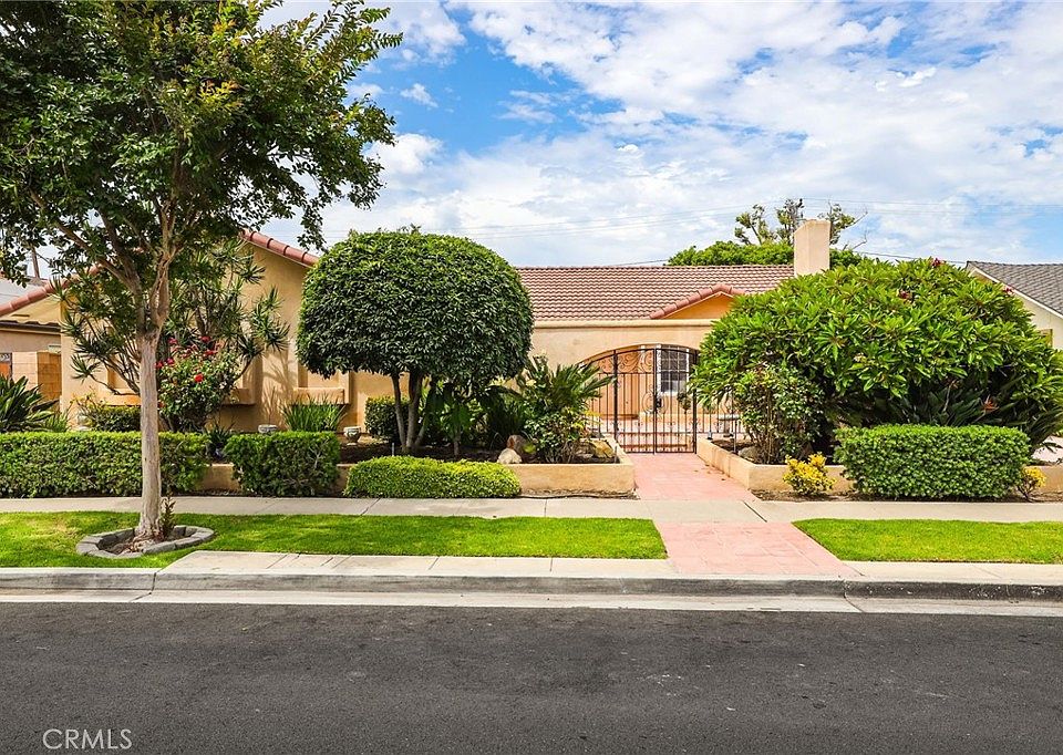 As you approach the front courtyard, you are greeted by a relaxing water fountain and beautiful landscape that provides a private oasis where you can relax. Step inside, and you will be immediately impressed by the elegant formal living room with fireplace. The central kitchen is equipped with ample counter space, double ovens and a convenient layout that makes cooking a breeze. Adjacent to the kitchen, you will find a dining area with built in buffet cabinet and glass door hutches. The separate family room at the back of the home is perfect for more casual gatherings. This cozy space features a welcoming fireplace, a bar area where you can entertain friends and family, as well as a craft/office area that can be tailored to your personal preferences. This flexible space allows you to easily adapt it to your specific needs, whether it be a dedicated office for remote work or a creative space for hobbies. The primary suite has a spacious layout, a walk-in closet, and a well-appointed en-suite bathroom. Additionally, there are three large guest bedrooms that provide ample space for family members or visitors. The backyard features a built-in BBQ area flanked by a vegetable garden and planters. The detached two-car garage provides convenient parking and additional storage options. Located in the award winning Los Alamitos School District.