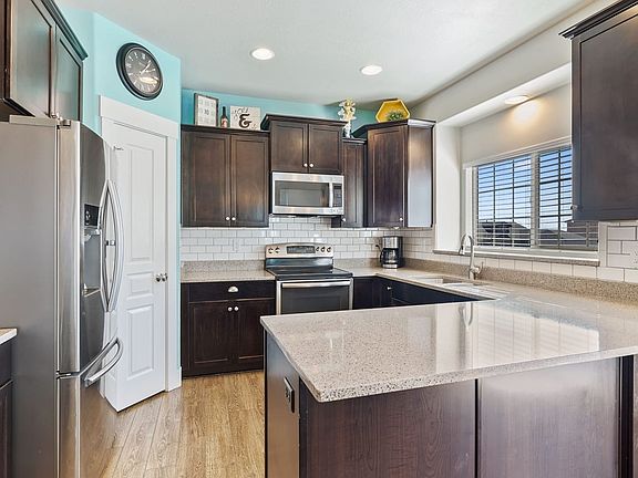 Beautiful custom 2 story home in East Layton. Corner Lot with Beautiful Mountain views. Chefs Kitchen with soft close drawers. Stainless steel appliances. 9' ceilings throughout including the basement. Gas Fire Place. Master has vaulted high ceilings, with his/hers sinks, large soaking tub, and separate shower. Walk in closet. Recessed lighting throughout. Walk out basement. GREAT neighborhood park.