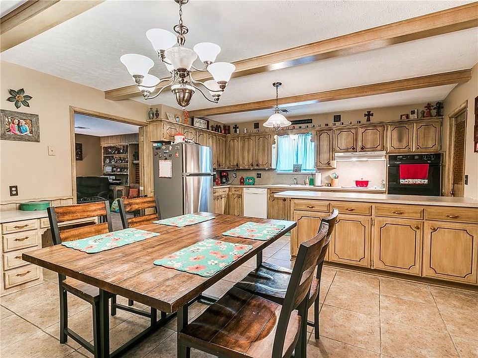 Featuring 3 bedrooms, and 2 bathrooms, as well as a 2-car attached garage, this home has so much to offer. The large kitchen comes with antique finished cabinets and plenty of counter space overlooking the dining area that is terrific for entertaining. Both bathrooms feature shower-tub combos, and the master bedroom includes his & her closets. The living room is highlighted by a beautiful brick fireplace, the storm shelter is located in the garage, and none of the bedrooms are small. The a/c was replaced a couple years ago, and the large backyard provides plenty of space and privacy.