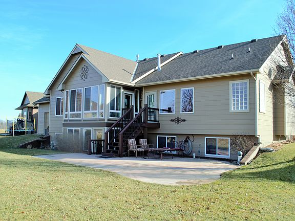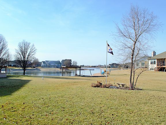 Lake living in a custom built-one owner-ranch home with 4 CAR GARAGE 5 bedrooms, Maize Schools, no specials, open plan, full kitchen in finished basement and cul de sac lot. Come home to fantastic views of the lake, your lake gazebo and dock or splash in the 40 acre lake of Ridgeport Lake. Lake allows for water skiing, jet skis, fishing and swimming. Designer colors and finishes greet you as you enter the open plan with hardwood floors, sunroom that overlooks the open commons area and the winding water views of the lake. Kitchen has quartz counters, walk in pantry, induction cooktop and all appliances remain. Formal dining, breakfast nook, and living area are all open with lots of natural lighting. Master bedroom has windows to the lake views, ceiling interest, and laundry room with sink is just adjacent to the master bedroom. Basement has FULL kitchen with granite island-this space for entertaining is fabulous. Wood laminate flooring in the walkways, walk out area is finished for additional storage or possibly a hot tub, abundance of storage, full bath and a family room.Garage has room for 4 cars, has built in shelving, roll up door to the backyard and you will love the patio outback. More areas to entertain or just relax and enjoy the lake life.