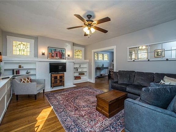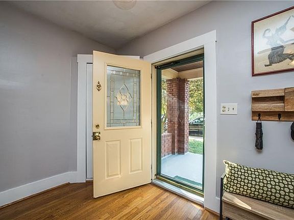 Gorgeous brick home, move in ready with all the character you're looking for & parking! The character is throughout from the original built-ins & hard wood floors to the stained glass windows & adorable porch swing. The freshly painted living room is the perfect color gray with white trim & fills with light from the large front & back windows. Enjoy built in shelving & a decorative fireplace. The hardwood floors flow from the living room into the dining room which has built in cabinets to display your dining ware. The dining room opens up to the kitchen with a breakfast bar. Enjoy soapstone counter tops throughout the kitchen with lots of cabinetry & stainless appliances. The deck off the kitchen is private & perfect for entertaining. Upstairs enjoy three bedrooms with fresh paint & new doors. Great storage closets in the hallway! The partially finished walkout basement includes a full bath. Convenient detached garage with 2 extra parking spaces! Radiators have custom made covers.