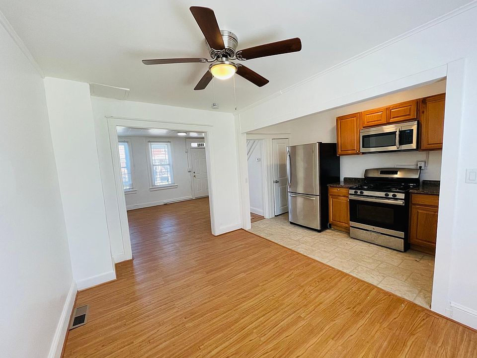 Perfect 3 Bedroom 1 Bathroom townhome located in East Baltimore. Newly Renovated w/ ample living space, including a finished basement! Beautiful new hardwood floors throughout. Washer / Dryer included. Large front porch & rear yard provides for additional outdoor space. Minutes away from Downtown Baltimore and The Johns Hopkins Hospital. Available now! All applicants encouraged to apply. Background and income verification required. One year leases available with option to renew.