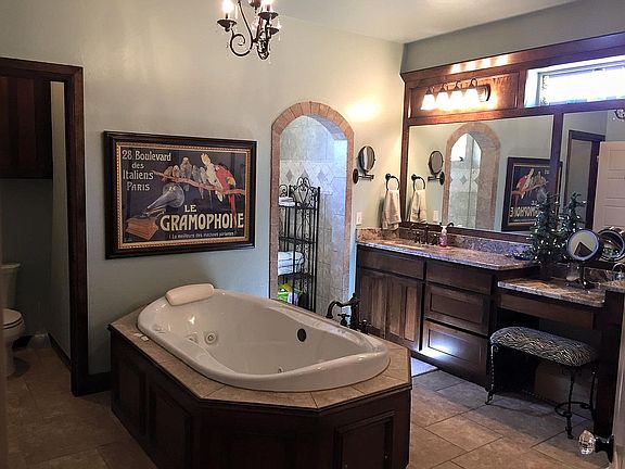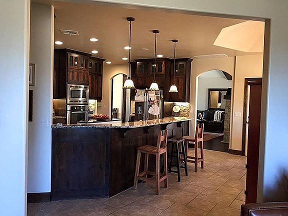 Blue Jay Construction builder's personal home. Loaded with upgrades. 2x6 walls, full foam envelope insulation, impact resistant shingles, extensively piered and reinforced foundation. Custom built with hand scraped Douglas fir beams in living areas, scraped hickory wood floors, hearth room just off kitchen, large windows overlooking thickly wooded 2 acre lot. Huge master bath with oversized walk-in shower. Bedroom 2&3 downstairs with jack-and-Jill bath. Upstairs hosts bedroom 4 with private bathroom. Study at the front of home complete with built-in and continued wood flooring. Full sprinkler system, large storm shelter. Bosch stainless steel appliances. 2 fire places. 30x50 shop. Amazing concrete lagoon style pool with grotto. Additional 860 square feet of covered patio space added off the back porch with a 21x25 sq ft pavilion with gas/wood burning fireplace and built-ins for mini fridge and grills, and 21x15 sq ft pergola with polycarbonate roof. Exclusive neighborhood with multiple ponds. Beautiful home.