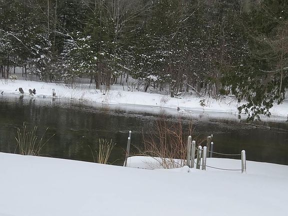 Spacious & amazing Bellaire home located on picturesque 126' frontage of Intermediate River, giving boat access to Intermediate Lake & whole upper chain of lakes. This estate sized home features huge living rm w/fireplace, wrap around decking w/awning, numerous sliding doors, windows & river views, custom large kitchen, master suite w/European walk in dual headed shower & large walk in closet, att garage w/work shop, central air, paved drive, landscaped w/plush lawn to waters edge & year round dock & river side sitting area. All within walking distance to downtown! A lot here for the money!