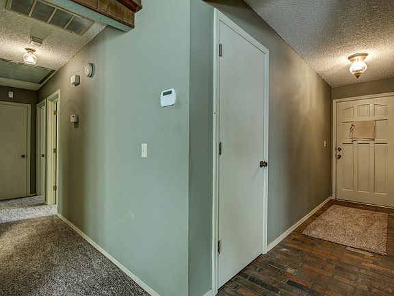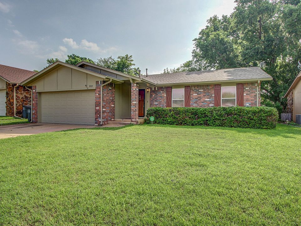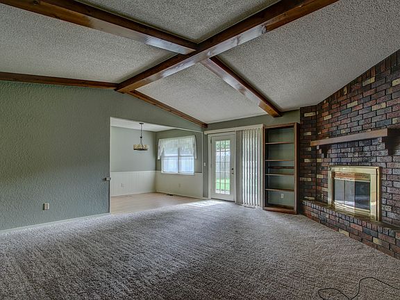 Full brick family home that's move-in ready w/ very roomy vaulted living room (wood burning corner fireplace) and large master bedroom w/ double closets. Off bedrooms are good sized too. New carpet in all bedrooms and living room. Faces West so extra wide back patio gets early summer shade. Wider Driveway & very nice storage building near mature trees in fully privacy fenced backyard.