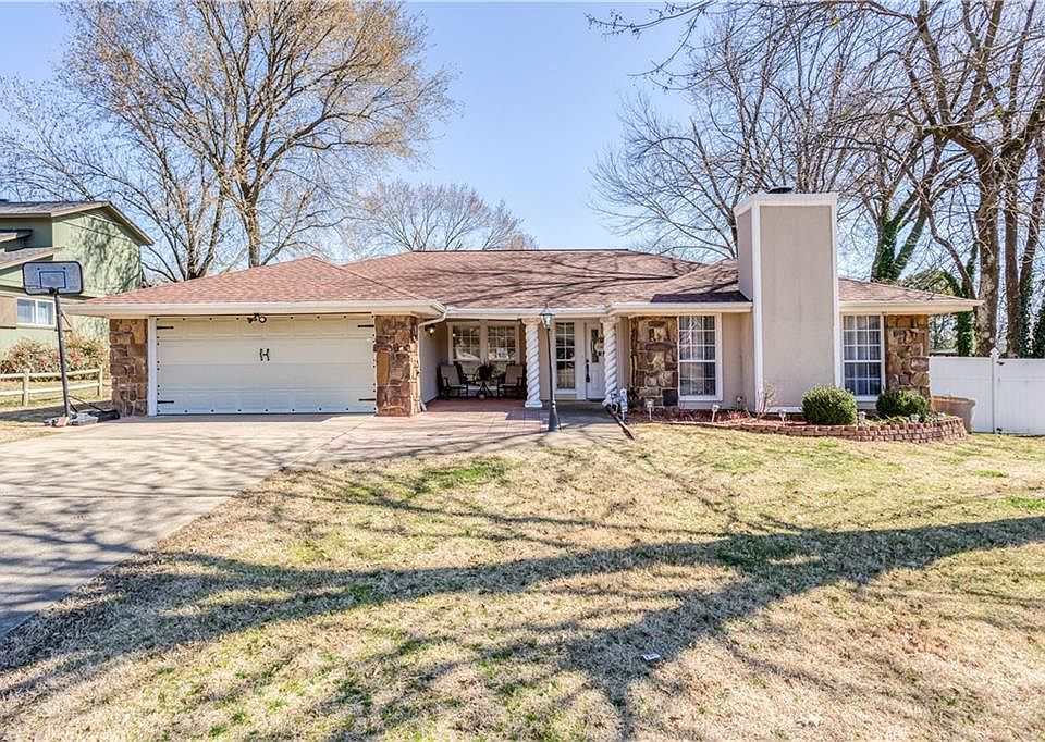 Spacious one level home with many updates. Both bathrooms have been updated with new granite, new sinks, and new state of the art walk in shower in the master bath. 2 living areas including a huge den with access to the beautiful covered porch and fenced in back yard. The eat in kitchen is open to the den and boasts of stunning granite, nice appliances and beautiful cabinets. Formal dining and living, split floor plan, and located in a quiet subdivision close to the athletic club.