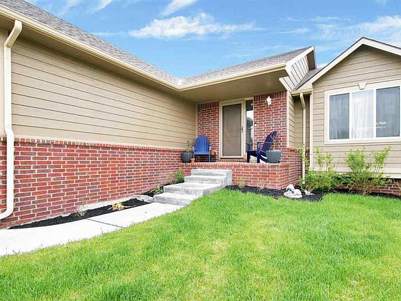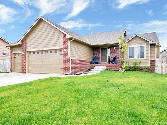 Masterful design pairs with beautiful finishes to give you this stunning home in the Bluelake community. Built in 2016, its systems, roof, and other features are newer and well-maintained. Pull in and you'll notice the excellent curb appeal, with manicured landscaping, a three car garage, and a partial brick facade. Enter the home and you'll find a bright and breezy living room under soaring vaulted ceilings. The picture windows illuminate the main floor in natural light, and there's a fireplace that provides a cozy spot to gather around during the colder months. The dining room is open to both the living room and kitchen, giving you a great layout for entertaining. It's seated in front of sliding glass doors to the back deck so you have lovely views while you're eating. The well-appointed kitchen offers sleek subway tile backsplash, lots of cabinet space, and an eating bar. The home's three bedrooms are all located on the main floor. The master is spacious and features vaulted ceilings and an en suite bathroom with a double vanity. The other two bedrooms are sizable and offer ample closet space. A second full bathroom finishes this great main floor. Head downstairs and you'll find a huge family room. This space is great for an entertainment spot, play room, or even a game room. The options are endless! The basement is ready to be finished with two more bedrooms and it's plumbed for a third bathroom. Finally, step outside and check out your back yard. Fully-fenced for your privacy, it has all the room you need for outdoor activities. You can enjoy an incredible Kansas sunset on the back patio, and the deck offers a great space for your grilling equipment. Tucked away on a quiet cul de sac, this home is located within walking distance of the community lake and is close to Textron, Cessna, shopping, restaurants, quick highway access, and more. Schedule your private showing and come see this gem TODAY before it's gone for good!