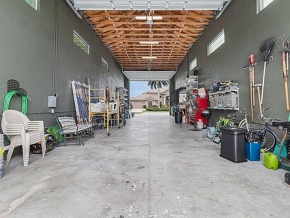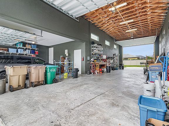 This unique one of a kind custom built 2016 home with a nicely sized RV garage that is 20ft wide, 60ft deep, 17ft ceilings along with two 14ft garage doors. This 2403 sq/ft home offers an open floor plan with soaring high ceilings that encompasses 3 roomy bedrooms, spacious den/study, 3 full bathrooms, gorgeous custom kitchen, formal dining area and an impressive master bedroom suite. The gourmet kitchen has premium grade granite countertops with a massive island, high-quality stainless-steel appliances with 42-inch wood cabinets with under lighting and a large walk in pantry. Such a variety of unique FEATURES like enough garage space to fit all your toys along with motorhome hook ups with 50 amp service and sewer; crown molding throughout; custom lush landscaping with LED lights; paver driveway; oversized corner lot; electric roll down shutters and accordion shutters; 6ft privacy fence, all wall TVs included & so much more! Located in the very desirable Cape Coral area with easy access to major roads with close proximity to shopping, dining & entertainment. This one of a kind home will not last long so schedule your showing today. Check out virtual walkthrough tour!