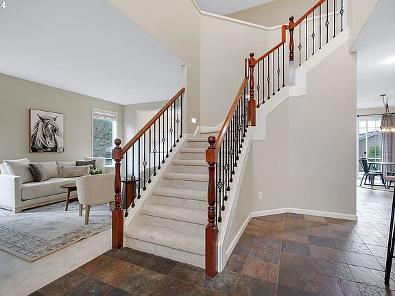 Welcome home to this beautiful Craftsman nestled on a corner lot on one of the most coveted streets of West Linn with breathtaking views of Mt. Hood! Featuring 4 beds + den + bonus + 2.1 bathrooms, this light and bright home has an updated and fresh interior with new carpet and paint throughout. The inviting floor plan offers a grand foyer with elegant slate floors and french doors that open up to a den. The spacious floor plan includes a formal living and dining room, an updated kitchen w/ slab granite, SS appliances, dining nook, & inviting family room with a cozy gas fireplace. Step out to the expansive backyard, showcasing an attractive Trex deck, patio, mature hydrangeas + raised garden beds, creating the perfect setting for entertaining guests year-round. Fully renovated primary retreat has ample storage and a spa-like bathroom complete with a free-standing soaking tub, gorgeous double sink vanity + tiled shower - all complete with a spacious walk-in closet. Possibilities are endless in the bonus room which would function perfectly as a theater room, game room, gym, etc! This desirable West Linn neighborhood is a short jaunt to nearby Tanner Creek Park, shopping, dining and more! Award winning schools! Open Sunday 1pm - 3pm!