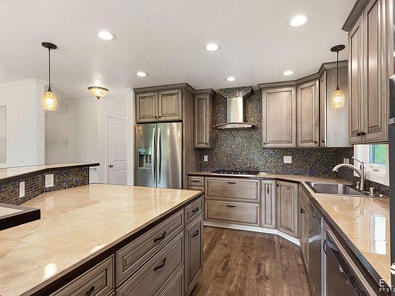 - Ceiling Fan(s), CO Detector(s), Window Coverings, Vaulted Ceiling, Jetted Tub, Security System, Fireplace, Dishwasher, Refrigerator, Disposal, Carpet, Laminate Flooring, Family Room, Microwave (B/I), Washer &/Or Dryer, Double Ovens, Gas Cooktop, Range-Downdraft, Basement
