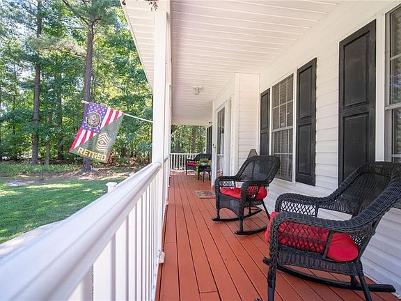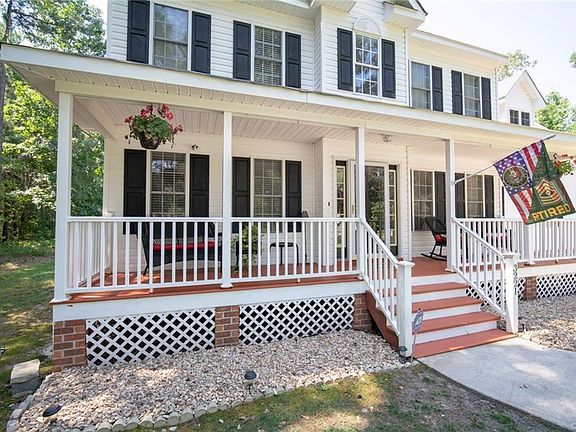 Welcome to this lovely 2-story home, located just a short drive from Fort Lee and interstate commuting. Image yourself rocking on the large country front porch and enjoying the quiet sounds of nature. Upon entry to this home you are greeted with a 2-story foyer, formal living and dining rooms with hardwood flooring. The kitchen was renovated in 2015 to include ceramic tile and backsplash, new cabinets and countertops with eat-in breakfast area. Family room host a gas fireplace and with lots of sunlight and opens to a back deck overlooking a large expansive back yard. In the backyard are 2 sheds. Upstairs master bedroom with master bath tub and shower and 2 additional bedrooms. The Bonus room could be used as a 4th bedroom. Garage is finished with shelving, coated floor and insulated garage door.
