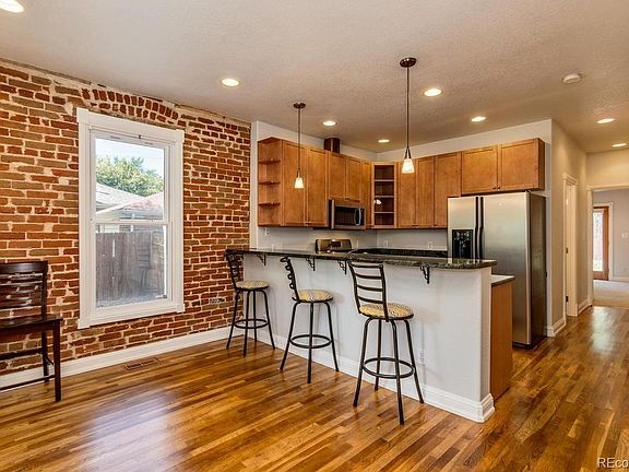 This Victorian historical home has original exposed brick and natural hardwood floors with a modern flavor by being completely remodeled from the ground up. Updates include sewer lines, electrical,fresh paint, new carpet, AC, gas fireplace, stainless steel appliances, maple cabinets, granite counters and even a jetted tub! The open floor plan kitchen leads to two bedrooms and two baths to create an ideal architectural flow. In addition to the spacious closets, there is also plenty of storage below in the large crawl space. Enjoy indoor/outdoor living by opening the master bedroom french doors onto the new deck and private backyard! Walk to the hip Highlands Square and Mile High Stadium, close to downtown and Sloans Lake.