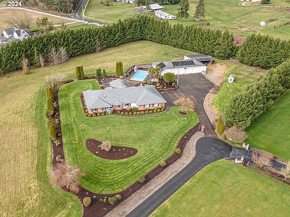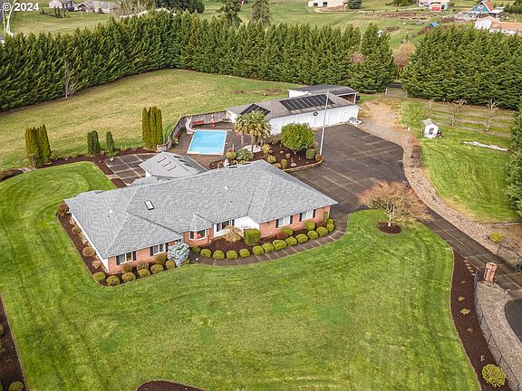 Welcome to this lovely home nestled into a private oasis. Offering everything you need on one level while bringing a complementary blend of luxury and functionality. Discover timeless elegance with hickory floors enhancing the space along with skylights and solar tubes. The open and updated kitchen is a chef's delight, featuring modern appliances and ample counter space for culinary creations.The primary suite offers heated floors in the private updated bathroom with dual sink vanity, walk-in shower, and ventilating skylight.Heated floors again welcome you to the large sunroom providing a cozy retreat year-round where you can completely tuck away glass doors to seamlessly blend indoor and outdoor space.Privacy and security are paramount, thanks to the gated entrance and surrounding acreage. Outside you'll find the solar-heated pool amidst the palm trees, fountains and beautifully landscaped grounds.For peace of mind, a stationary generator is included, providing backup power when needed. The property boasts a large shop with water, electric, industrial hoist, and a ventilated welding area, catering to the needs of hobbyists and professionals alike. When the day is done head for the rejuvenating sauna to unwind.Additionally, a 420 Square foot apartment provides flexibility for guests, in-laws, or kids to have their own space. Furthermore 1300 square feet of lean-to provides additional storage for equipment and tools.We have included a tractor and zero-turn mower to make property maintenance a breeze.