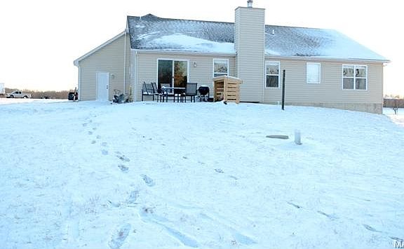 Beautiful Ranch home, like new with ceramic tile entry foyer. Many upgrades including all new flooring, new paint, new kitchen with island, newer stainless appliances, new refrigerator stays. There is a MFL, the Great Room is vaulted with a wood burning fireplace and open staircase to finished lower level. The Master bedroom has a coffered ceiling and a nice master bath with double sinks and large walk in shower. You need room to move, the lower level has a 21x38 Living/family room, a wet bar with a fun little play area under the steps with access through the wet bar ( see if you can find it) a full bath, 2 additional bedrooms, an office and storage room. There is a three car garage for your vehicles and toys. The property is 3.1 acres with a number of producing fruit trees. The back yard backs to farm land. If your looking for a nice quiet place in the country with no passing traffic you must see this one!