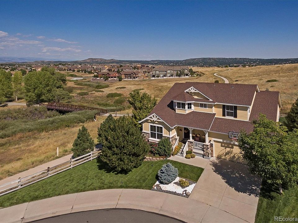 One of the best lots in Castle Rock! At the top of a cul-de-sac, surrounded on 3 sides by open space. SPECTACULAR MOUNTAIN VIEWS!! Beautiful finishes & attention to the smallest detail have gone into creating this warm and welcoming home. The bright free flowing open floor plan creates an atmosphere which is ideal for entertaining as well as comfortable family living. Gleaming hardwood flooring. Sophisticated architectural accents, such as arched doorways, vaulted & tray ceilings, & upper windows grace this home. Cooking will be a pleasure in the Gourmet Dream Kitchen which features stunning upgraded cabinetry, granite countertops, huge island with breakfast bar & hanging pot rack, stainless appliances, including a Jenn-Air gas cooktop. Sun-filled eating area, pantry. Gorgeous 2 story Family Room. Natural light pours in thru the wall of windows which capture the beauty of the naturally landscaped open space. Gas fireplace w/unique floor to ceiling stacked wood accent & bar area w/granite top, cabinets & handy wine cooler. Luxurious Main Floor Master Suite features a wall of windows & vaulted ceiling. Beautiful 5 piece master bath has 2 separate vanities w/tons of cabinets & deep soaking tub. French doors open to Main Floor Office ~ perfect for todays remote working. Upstairs you will find 2 large bedrooms, one with walk-in closet & views, plus Loft Area w/built-in desk & custom shelves. Amazing add'l living space in garden level basement which has large recreation room with wet bar, 4th bedroom & full bath ~ ideal for out-of-town guests, abundant storage areas. You will absolutely love the wonderful outdoor living space. Expansive 359 x 121 deck overlooks open space and is the perfect place to watch the colorful sky at sunrise and sunset. Castle Rock is a special place to call home. You will love the majestic scenery & views, miles of walking paths, community pool & tennis courts and this home is steps from Paintbrush Park. This is Colorado Living at its Best!