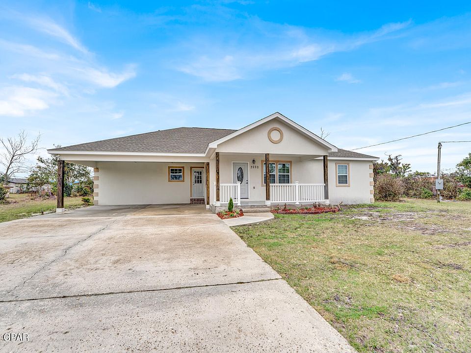 This 4 Bed/3 Bath home with TWO master bedrooms with en-suite baths is a beautiful new construction with modern touches. The sits home on almost .50 acres in a quiet, up and coming area. This home features a massive kitchen for entertaining, 20ft ceilings in the living room, tray ceiling in the bedrooms, brand new quarts counters, vinyl plank flooring, marble tiled bathroom & shower, large laundry room, carport & MORE. For the owners, they get to enjoy a quiet space along the back of the home with slider door to the back porch, large walk in shower, a walk-in closet plus his & her sinks! Behind the home sits a building for storage ready to be a great workshop or she-shed! Check it out soon! *Former home torn down, all 2022 plumbing, electrical, windows, a/c, water heater, foundation, roof