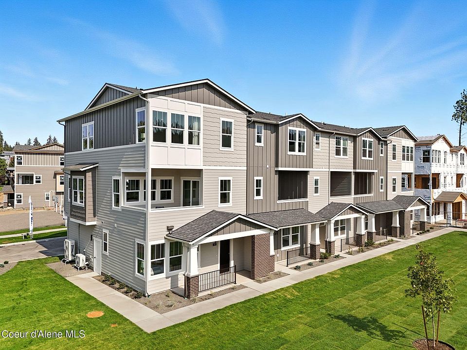 Introducing The Onyx floor plan at Coeur d'Alene's newest community- Grand Mill, where modern comfort meets northwest charm! This vibrant 3-story condo features 4 bedrooms, 3.5 baths, a den, and a 2-car attached garage designed for effortless living and entertaining. The first floor includes a private guest suite with en suite bath and rear-entry garage for easy access. Upstairs, enjoy an open-concept layout with a spacious great room, dining area, and kitchen that flow beautifully together. A private den and covered deck offer the ideal work-from-home setup or cozy retreat. The third floor hosts the primary suite with en suite bath and walk-in closet, plus two additional bedrooms with a shared Jack-and-Jill bath. With 10' ceilings, floor-to-ceiling cabinetry, an elegant electric fireplace, and smart home technology, The Onyx delivers elevated living in the heart of Coeur d'Alene. **Please note- Photos are of the on-site model home, the actual home for sale is under construction.**