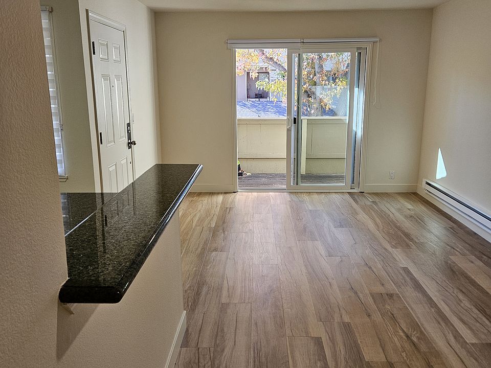 Wonderful upstairs unit. Great use of living space. Kitchen features stainless steel appliances, refrigerator, granite counters, breakfast bar & closet. Bathroom has granite counter. Newer floor in living & dining area, designer tile floors in kitchen & bath. Large walk-in bedroom closet, plus large storage closet at deck, Trex decking. Close to schools, Quarry Lakes, Farmer's Market trails and shopping. HOA includes gym, pool, clubhouse, water and trash. Note: This unit is a one person occupancy only. 1 year minimum 1 person occupancy only