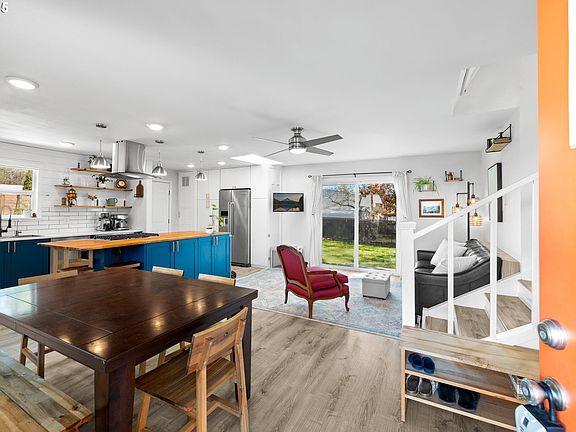 Charming and thoughtfully updated home in the heart of Milwaukie! Nestled at the end of a long driveway on a generous 0.25-acre lot, this 2-bedroom gem features a remodeled kitchen with butcher block island, new plumbing, new roof, fresh exterior paint, vinyl flooring, and a brand-new privacy fence. The light-filled open floor plan is perfect for both daily living and entertaining. The unfinished basement offers great potential for a home office, gym, or extra storage. Step outside to a spacious backyard with room to play, garden, or relax—complete with seven mature fruit trees. Located just minutes from the new Trader Joe’s, Milwaukie Bay Park, Riverside Elementary, and transit. And coming Fall 2025—a brand-new library, park, and community center will be completed within walking distance!