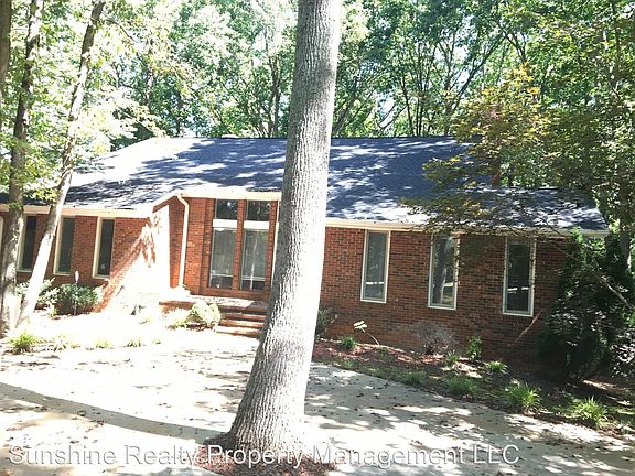 Four bedroom, 4 bath house in Southern Alamance, Just reduced! - This roomy country home is situated at the end of a private road under lots of shady trees. The home has a den, eat in kitchen, dining room, living room, bedroom, and bathroom on main floor. Step out onto the huge patio overlooking peaceful forest! Upstairs you'll find a master bed and bath, two more bedrooms, and another bathroom. The basement offers two rooms (could be used as bedrooms), another bathroom, a living space, and a full kitchen. Walk right out of the basement and onto a patio/walkway into the back yard. 4.6 acres of wooded land. Well water, central air, propane heat. Pets considered with pet fee, references, and prior office approval. Fireplaces throughout, open staircase, and other features make this home unique. Storage shed included. (RLNE2571067)