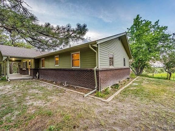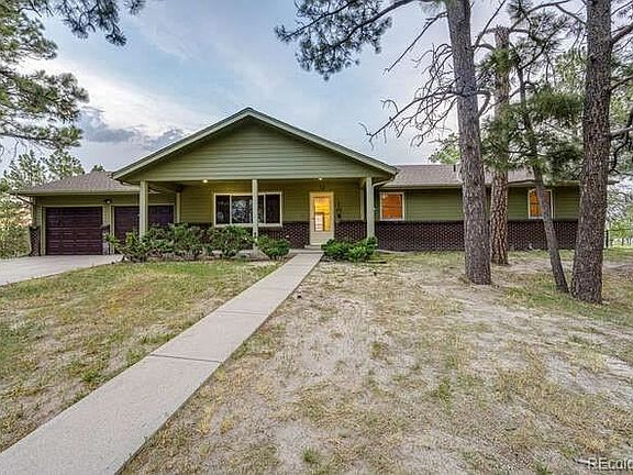 Welcome to your quiet space, pine trees and beautiful sunsets. Country living with a cozy ranch style home, 2 car garage on 5 acres with lots of trees. TLC is needed and the possibilities are endless. 3 bed, 2 bath, office space, and a wood fireplace to cozy up to on cold winter nights. Spacious basement can be finished with your personal touches. Already has a huge walk-in pantry and finished area for a craft room or whatever you make it. Sit on the back patio or the front patio and enjoy wildlife and total tranquility listening to the rustling of the pines in a cool summer breeze. The rustic red and white barn is just perfect for your critters or storage with electric and water spicket close by. The top could be used for hay storage with the lower part great for your animals. Utility Shed equals storage and more storage. Chicken coop is a plus, there's nothing like fresh eggs for breakfast. Horses are welcome to roam on your 5 acres. Newer roof and Hot water heater. NEWSFLASH: Water rights have been adjudicated and will transfer at closing to buyers. Not only do you have water rights from the upper dawon, also the rights to Denver, Arapahoe, Laramie Fox-Hills Aquifers, a total of 5.6-acre feet per year. This is a huge plus that is added to the value of this diamond in the rough. Now is the time to move to your peaceful relaxing home...welcome to this special place to hang your hat and imagine the possibilities!