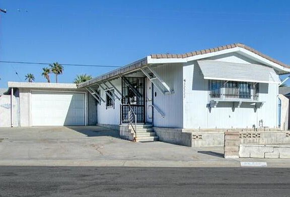 Seller Financing/low down/Owner will carry up to 25 years. Come see this beautiful well-built and well maintained spacious home with a GARAGE and LARGE KITCHEN with breakfast nook. New dark wood flooring throughout this 2 bedroom/ 1.5 bath house with a Bonus Room. Don't judge a book by its cover, as you must step inside to see for yourself this open design with vaulted ceilings with elegant dark wood flooring & large windows throughout. You will enjoy this OPEN KITCHEN with extra cabinet space and half circle window, There is an additional expansion off the living room and a dining area. The BONUS room acts a 3rd BEDROOM with outside entrance. Bright home with lots of windows. There is a large Patio Slider for front porch access. House is fresh and clean as the entire home is freshly painted. Step outside to enjoy this private Hacienda-style outdoor patio space with many possibilities. Includes a fountain and fire pit. and includes a wrap around covered patio. Attached enclosed ''Catio''. This home sits on a large lot with a long driveway with a large GARAGE equipped with an automatic garage door opener. Garage has an separate enclosed Workshop with shelves & electricity, a workshop, sink, and outside toilet room. For security, the entire home is secured by Iron Security Window bars and door security screens. This home is conveniently located near the entrance of the Park so you can come and go with ease. If you want to live a luxury lifestyle that's also affordable, make this your new home in beautiful Tri Palm Estates. Seller financing. Low Down Payment. Owner will carry up to 25 years. You own the land, No rental space fee as you own the land.Located in Tri Palm Estates is a 55+ well maintained Golf Course community in the desert-27 holes of Golf plus 2 practice greens. Enjoy 3 Swimming Pools/ 2 Spas, 2 Tennis Courts, Pickleball Courts and an active Clubhouse. Great opportunity Seller financing, low down payment, will carry up to 25 years.