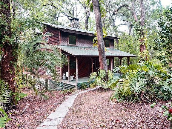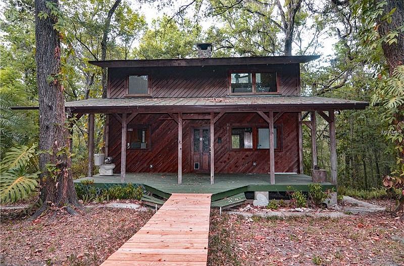 Hillside hideaway cabin in the woods with a natural relaxing setting on 11 wooded acres. Experience "Old Florida" while you relax and unwind while watching the local wildlife. Your own private park where you can enjoy parties with friends or just get away from the hustle and bustle to unwind and de-stress. Property has elevations ranging from over 200' to 120' plus a private pond fed by seasonal streams. Perfect for wildlife watching or hunting. Enjoy ATV riding, camping, cookouts, or hang a hammock to enjoy a nap and a good book. Unique cabin style home with a loft bedroom, heart of pine floors, and custom crafted solid wood cabinetry. The centerpiece of the home is a towering wood burning fireplace constructed of natural field stone. Soaring vaulted ceilings and exposed beams create a mountain cabin feel in the home. Dual sliding glass doors offer access to the 9'x24' balcony that offers a commanding hillside view of the forest. NEW AC SYSTEM installed in 2016. Basement bonus room offers a WET BAR and could be a 2ND BEDROOM, billiard room, or poker room. The detached 24'x26' barn is perfect for storing ATV's, tractor, or yard equipment. Only 10 minutes from I-75 exit 293 and 45 minutes from downtown Tampa. NO HOA OR DEED RESTRICTIONS.