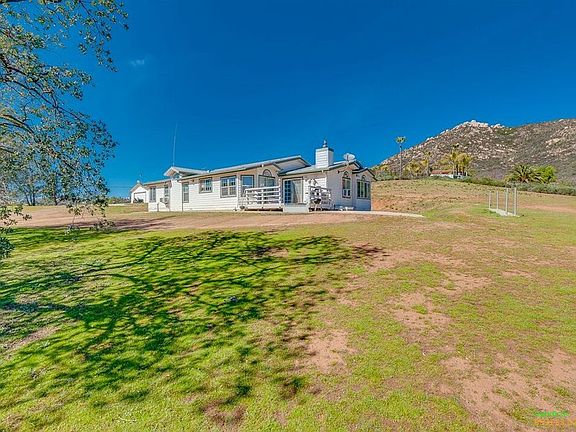 Enjoy the outdoors & surround yourself in the quiet, peaceful setting Jamul has to offer. You will feel at home on these beautiful grounds of 9.18 acres surrounded by oak trees & a seasonal stream. Spacious home features deck, extra large master bedroom w/additional bonus room, detached garage of 720 sq.ft. perfect for workshop, extended, updated electrical & security system throughout the home & more. Reliable well & Solar is owned. Manufactured home on permanent foundation.