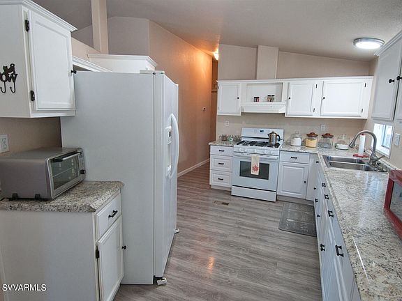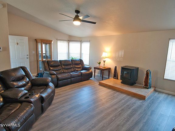 Amazing screened in super sized porch will have you enjoying the country living here in Camp Verde. This home has had love poured into it and is now looking for new owners. New flooring within the living room, dining and kitchen areas give it a nice open look throughout these rooms. There's a new pellet stove in the living room and carpet in the primary bedroom and 2nd bedroom so no cold toes in the winter time!Kitchen cabinets and counter was extended towards the dining area for extra space and storage. This updated kitchen even has a new stove all which makes this kitchen more efficient to cook your family meals in! Screened in covered porch adds tons of extra living space...This home is all on one level just up a few stairs from the yard on the front porch or down off back por
