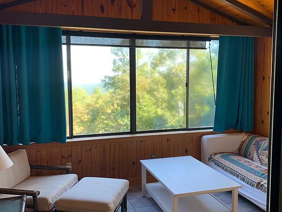 Idyllic Blue Ridge retreat on private road adjoining the national park, and near multiple vineyards. Multi-level floor plan. On the upper level there is a wrap around deck with beautiful views, sun room, living area, bedroom, bathroom, and shower. On the lower level there is the kitchen, half bath, living area, and deck. Tenant is responsible for utility bills (electric)