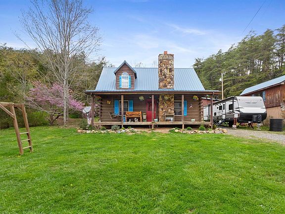 LONG Water Frontage on Little River for Fishing, Wading & etc. - PLUS 12. 242 Acres of Woods for Hunting, Hiking & riding 4 wheelers. Enjoy your Log Home with 3 BR & 2 Baths PLUS Multiple Storage Buildings. Sellers have enjoyed raising Goats, Chickens, Turkeys, Guinea's, & Bees. Enjoy the Vaulted Ceiling of the Living Room, Hardwood Floors & WB FP & NEW Propane Ventless Fireplace. LR/DR & Kitchen have Open Floor Plan. NEW Gas Range & Refrig. Convey. Laundry off Kitchen. Upstairs - 2 BR's w/Full bath w/Whirlpool Bath Tub & Skylight. Adjoining 259.28 acres at the rear is available for sale - See MLS #411175 for 3175 Little Creek Road, Dublin, Va. 24084. Culligan Water Softener for Hard Water Conveys. Well House behind house. Septic Drainfield on Right side of home. Metal Roof approx. 10 years old. There is Chicken House, NEW Storage Building & 2 other outbuildings. Sellers are taking the current small Chicken & Turkey House in the Front Yard. Stone Bldg - used to be cabin. See Documents.
