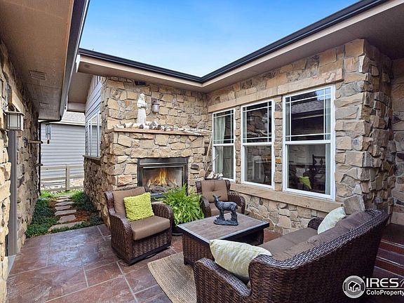 SOLD BEFORE PUBLISHED. Prepare to be impressed by this stunning former model home by Jamestown Builders. From the moment you arrive, its curb appeal and craftsmanship make a lasting impression. The inviting front courtyard, featuring stone and wood accents, is complemented by an outdoor fireplace, creating a welcoming space for relaxation. Step inside to discover a spacious, open-concept layout with expansive living and dining areas. The gourmet kitchen is a chef's dream, boasting double islands, a six-burner gas range with a double oven, and a large side-by-side refrigerator and freezer. The living room's centerpiece is a striking stone fireplace, flanked by custom built-ins, providing both warmth and style. The luxurious primary suite includes a five-piece bathroom with a large shower, a freestanding tub, and dual vanities for ultimate convenience. The main level also features two additional bedrooms, a well-appointed bathroom, and a functional laundry/mudroom. Downstairs, the beautifully finished basement is designed for entertaining and leisure. A spacious family room with another stone fireplace offers the perfect setting for movie nights or game-day gatherings. The adjacent rec room, complete with a wet bar, is ideal for a game of pool or ping pong. A bonus space offers endless possibilities, whether for play, games, or extra storage. Two additional bedrooms and a full bathroom ensure your guests enjoy privacy and comfort. The backyard is your personal retreat, featuring a covered porch, a patio with a tranquil fountain, and mature landscaping that creates a serene atmosphere. With newer solar panels, enjoy energy savings year-round. Located in the desirable Fossil Lake Ranch, this home is conveniently close to top-rated schools, parks, and a variety of amenities along the Harmony Corridor.