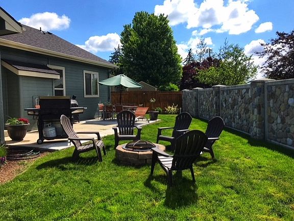 This eye-catching craftsman style home features an open great room area with vaulted ceilings and a gas fireplace. The kitchen features a raised bar with seating, breakfast nook, pantry, and, hardwood flooring. Split bedroom floor plan with a huge master bedroom that features a tiled soaker tub, separate shower, and a nice large walk-in closet. Large high ceiling garage for 2 cars and storage. Extended patio with hot tub pad, garden area, large fenced dog kennel and fire pit. Professionally landscaped trees, shrubs, and flowers in a backyard oasis with enough yard for kids play area or pets. This home offers great curb appeal and beautiful landscaping that create a welcome home feeling. This home is located in a corner culdesac, in a well-maintained mature neighborhood. This home has been very well cared for and is in excellent condition Close to shopping, Kleiner Park and the Village at Meridian.