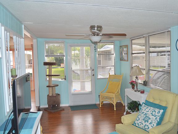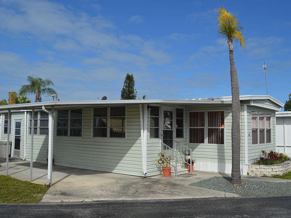 Wow! Check out this gorgeous 2/2 single-wide! This FURNISHED home has a light, bright coastal feel, and is located in Palm Terrace a 55 retirement community in beautiful Sarasota, FL! Featuring an open floor plan with beautiful floors, a spacious kitchen, plenty of natural light, and an indoor laundry... PLUS it is priced to Sell! You will love all of the extra built-in storage and additional space in the shed. This is the perfect spot for either annual or snow-bird residents! Enjoy the convenience of covered parking! Call Us TODAY! This home won't last long!