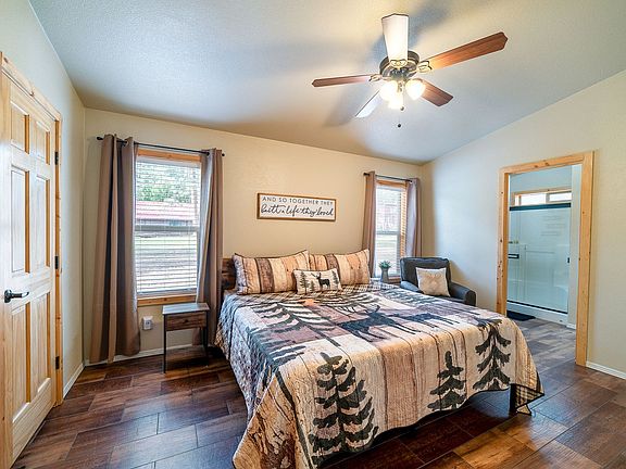 Escape to Pine, AZ, where your perfect mountain getaway awaits in this charming two-bedroom, two-bathroom cabin. A haven for nature lovers and relaxation seekers, this cabin is just steps from the Arizona Trail and miles of enchanting forest roads, setting the stage for an unforgettable adventure in the great outdoors. After a day of exploring, you're just minutes from Pine's unique restaurants, shops, and community events, offering the best of both worlds. Step inside to find beautiful wood floors, a spacious new kitchen, and an oversized, super comfy couch perfect for movie nights. The living room serves as a gathering spot for everyone, featuring a streaming-capable TV and fast Wi-Fi, providing all the comforts of home with a touch of mountain magic. The primary bedroom offers a luxurious king-size bed and a private en-suite bathroom, creating a personal retreat within the cabin. The second bedroom, with a cozy queen-size bed and easy access to a nearby bathroom, makes this cabin ideal for friends, families, or couples. You'll also have guest access to a washer and dryer, perfect for longer stays. Bring your furry friends along, as up to two dogs are welcome with a $75 pet fee. No cats, please. Two vehicles can park easily in the driveway, but no parking is allowed on the street. Wake up to elk and deer casually strolling through the yard, a magical sight that brings you even closer to nature. Imagine sipping your morning coffee on the large deck, surrounded by tranquility, or gathering here each evening to watch a stunning Arizona sunset. Enjoy meals together in the stylish dining area and unleash your inner chef in the fully equipped kitchen. With all the appliances, cookware, and kitchenware you need, you can whip up anything from a hearty breakfast to an elegant dinner. Local customer service is available from 8 am to 10 pm. All bathrooms include complimentary shampoo, conditioner, and body wash. You'll also find hair dryers, fresh towels, and laundry access. A starter set of toilet paper, paper towels, dish soap, dishwasher soap, coffee, and trash bags is provided. Every bed will have a fresh set of linens and a comforter or quilt, and one set of towels per person is provided.