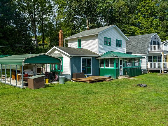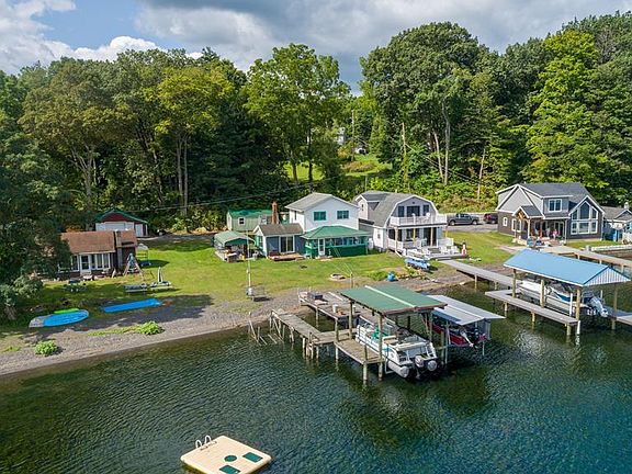 Year Round Lake Living at It's Best! Step into Your Own Paradise on Seneca Lake Featuring 55ft of Level Lakefront Frontage, Dual Permanent Docks & Boat Lifts and Plenty of Space to Enjoy! Home Features an Open Floor Plan on the First Level with a First Floor Bedroom, Bathroom, Laundry, Living & Dining Room & Kitchen. Upstairs is a Spacious 2nd Bedroom. Enclosed 3 Seasons Porch to Take in Every Sunrise & Sunset. SO MANY EXTRAS including Central AC, Forced Air, Storage Sheds, Cement Patio, Boat Lifts - TOO Many To List - COME CHECK IT OUT!