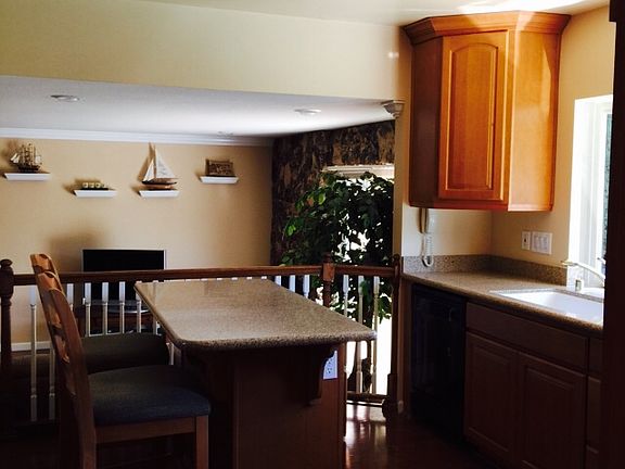 Wonderful Pleasanton home in quiet court location. Lovely remodeled kitchen with granite counters, large bay window, and island breakfast bar. Downstairs has a full bed/bath, fireplace, beautiful laminate floors and an atrium window with water fountain. Dual pane windows throughout. Just in time to enjoy your sparkling pool this summer. Walking distance to school and park.